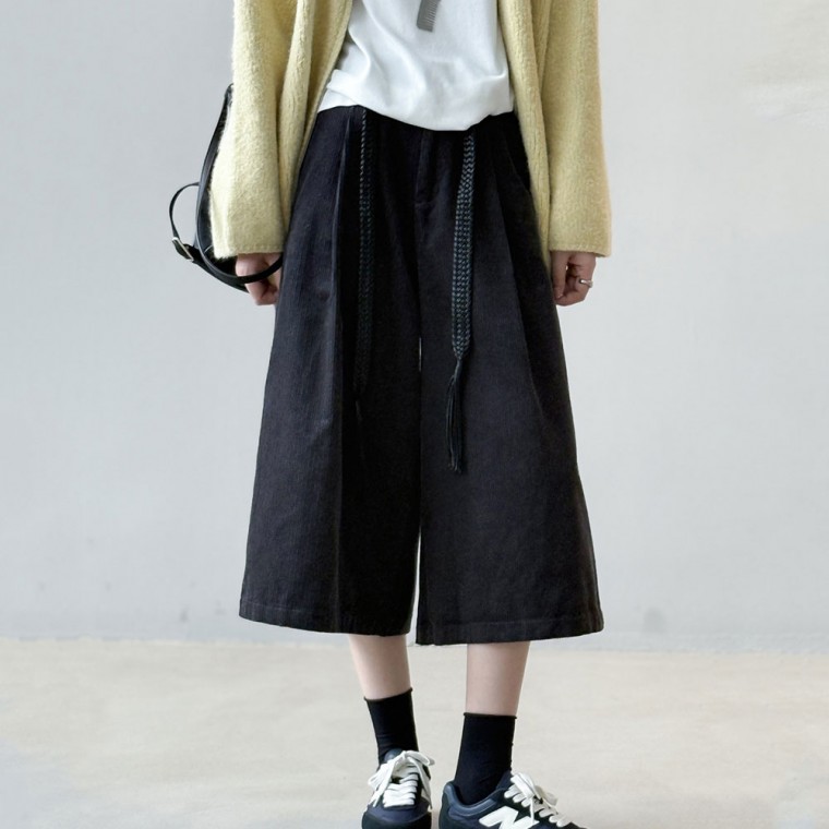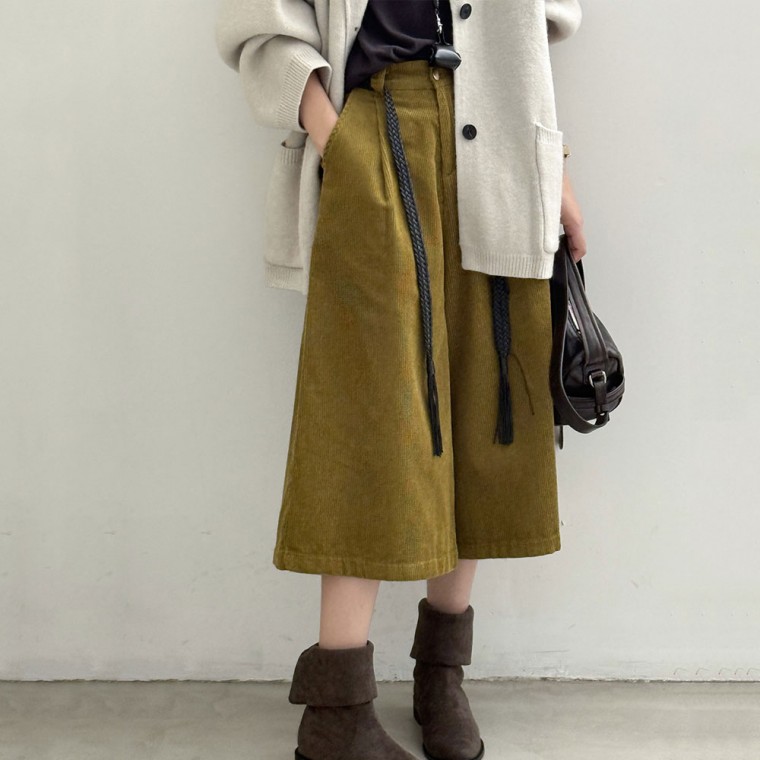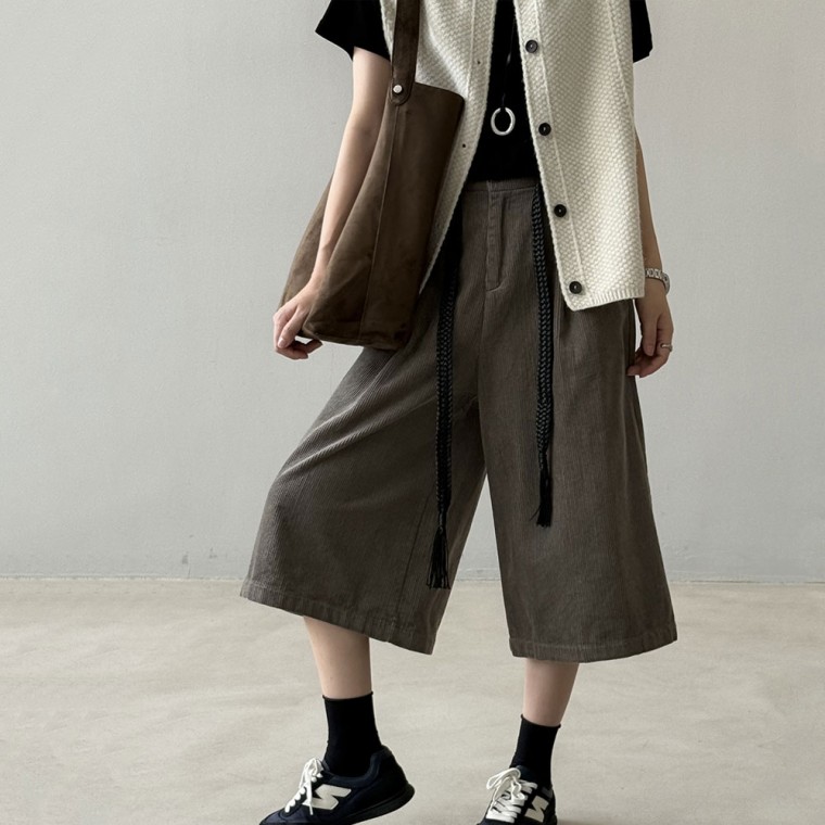 燈芯絨七分寬褲