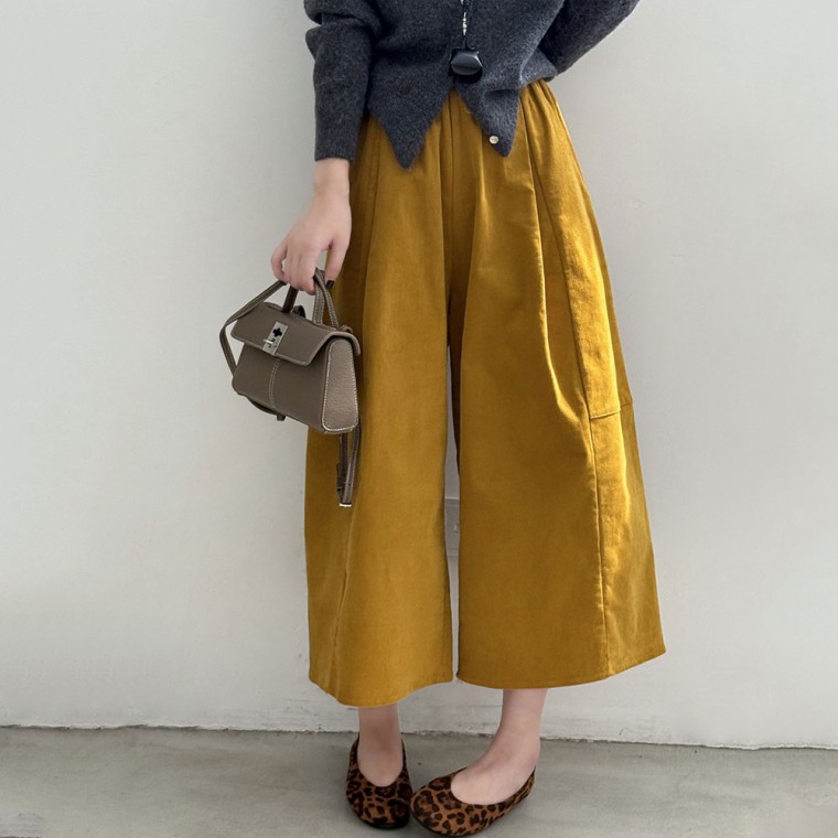 質感燈芯絨壓褶寬褲